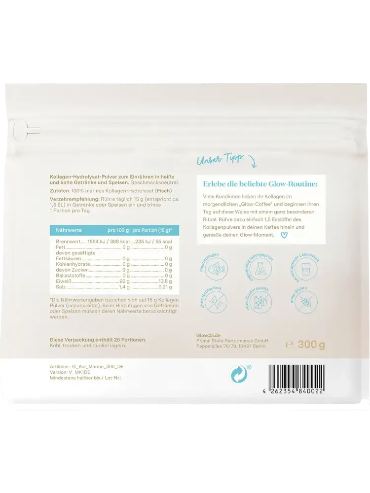 Glow25 Poudre de collagène marin, 300 g