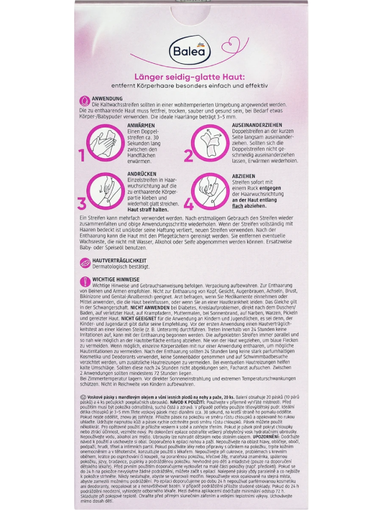 Balea Corps de bandes de cire froide, 20 pièces