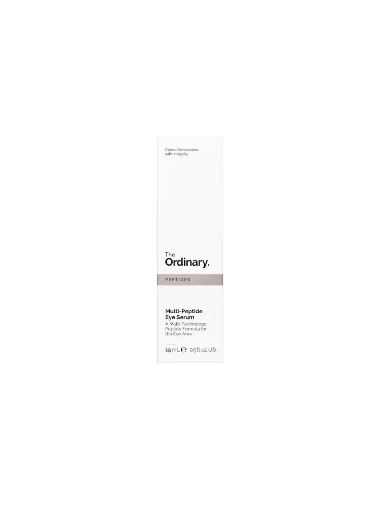 يمنح سيروم العين Multi-Peptide من The Ordinary منطقة محيط العين الحساسة مظهرًا أكثر شبابًا، حيث يساعد على تقليل تجاعيد أقدام الغراب والهالات السوداء والخطوط الدقيقة. يحتوي على عدة تقنيات مبتكرة من الببتيدات التي تساهم في تحسين مظهر البشرة. بعد الاستخدام تبدو البشرة أكثر شدًا ونعومة، كما تبدو الانتفاخات والهالات السوداء والخطوط الرفيعة أقل وضوحًا بشكل ملحوظ.