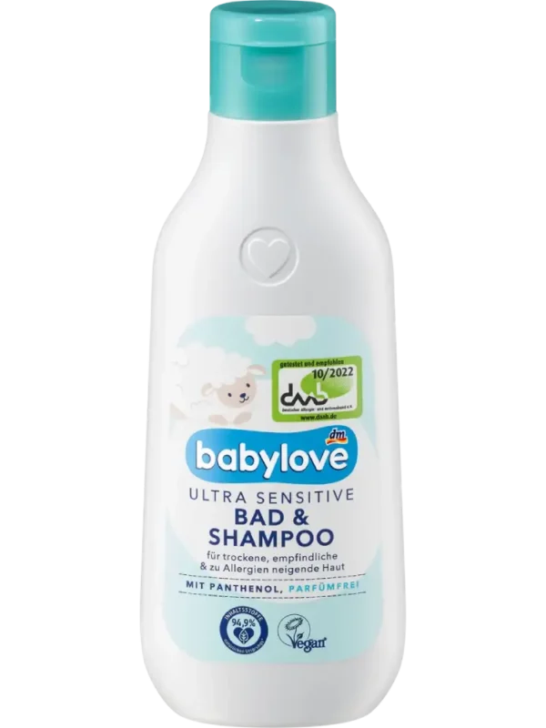 تم تطوير حمام وشامبو 2 في 1 فائق الحساسية من babylove خصيصًا للأطفال ذوي البشرة الجافة، الحساسة والمعرضة للحساسية. بفضل تركيبته اللطيفة الغنية بـالبانثينول، يتم تنظيف البشرة بلطف وفعالية دون التسبب في جفافها.