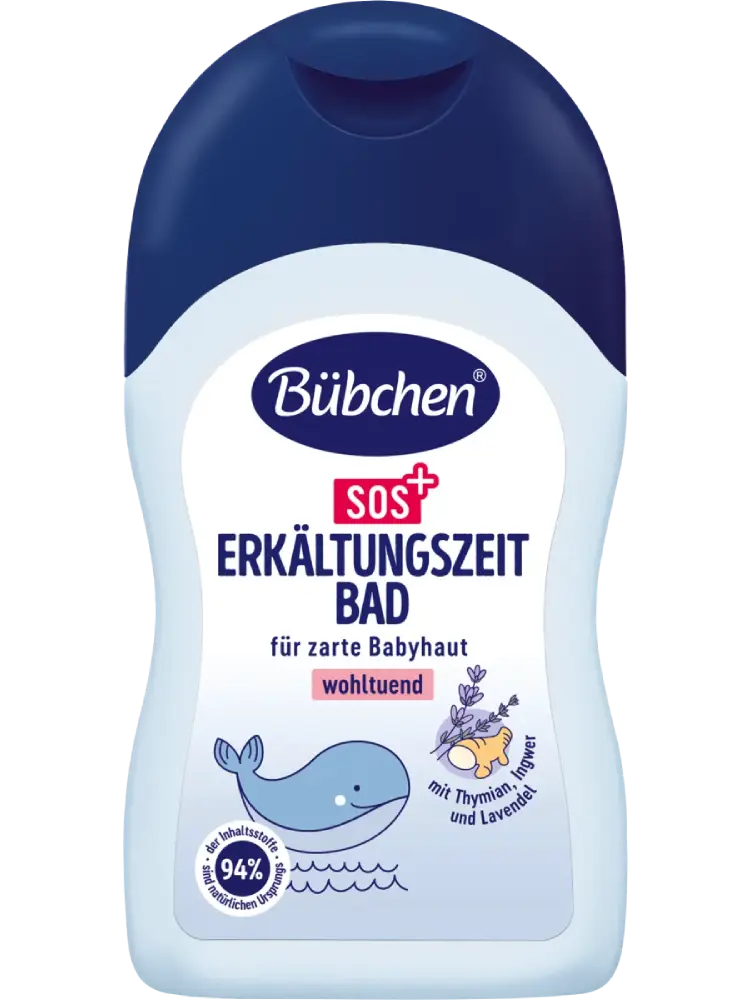 يعمل حمام SOS لفترة الزكام من Bübchen على تنظيف بشرة الأطفال الرقيقة بلطف منذ الشهر السادس، مع تقديم عناية مهدئة. تركيبة من الزعتر، الزنجبيل واللافندر مثالية في الأوقات الباردة، حيث تغلف الطفل بعطر لطيف ومريح.