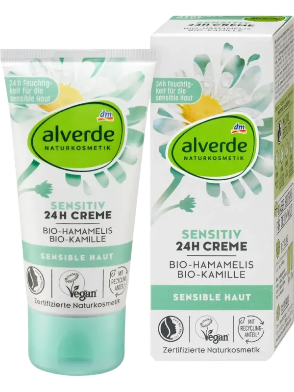 اكتشف كريم الوجه الحساس من alverde لمستحضرات التجميل الطبيعية، مع البابونج وبندق الساحرة، المعروفين باستخداماتهما المتعددة.