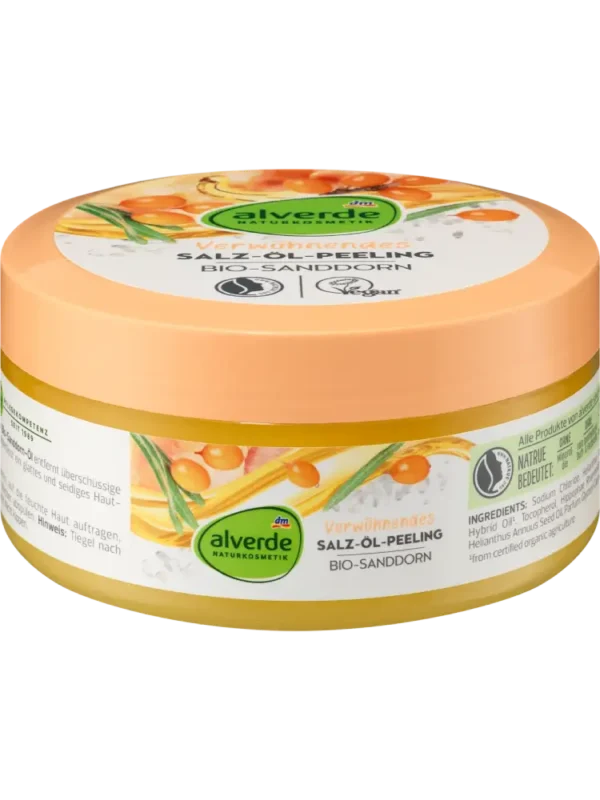 يوفر مقشر الجسم بالملح والزيوت من alverde NATURKOSMETIK إحساسًا ناعمًا وحريريًا للبشرة. يحتوي هذا المقشر على زيت نبق البحر العضوي الذي يساعد على إزالة خلايا الجلد الميتة والشوائب.