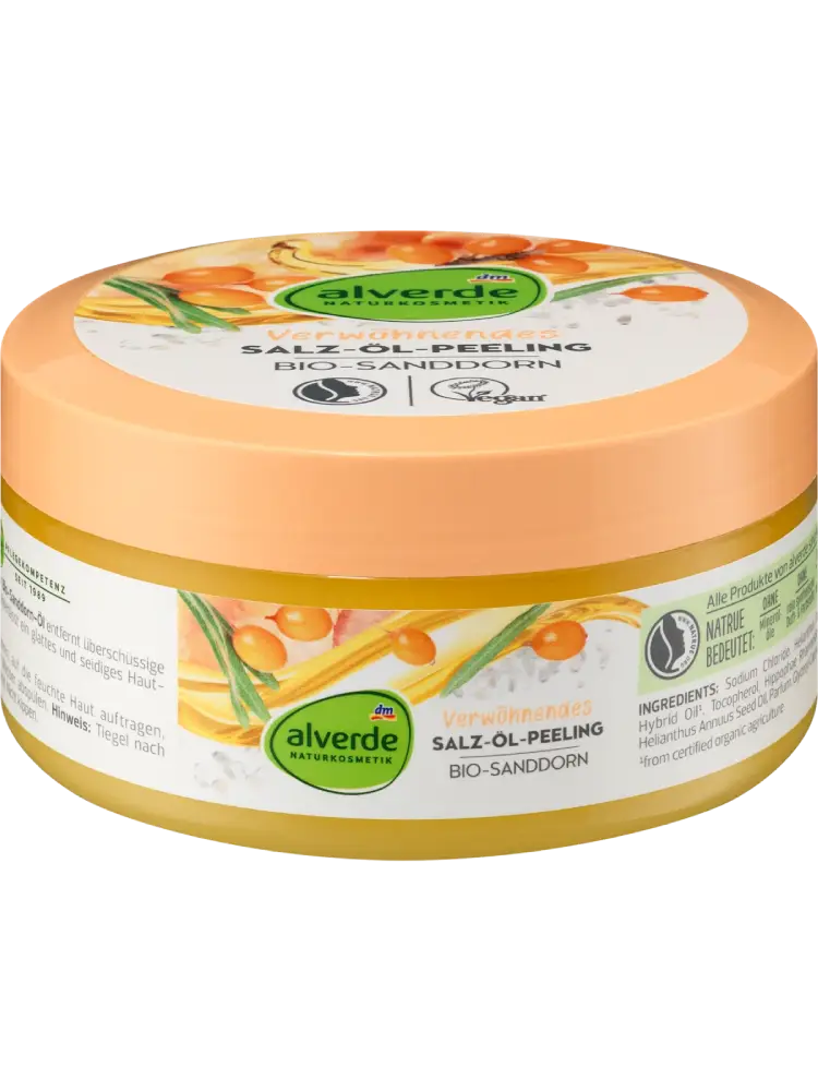 Le gommage sel & huile nourrissant d’alverde NATURKOSMETIK procure une sensation de peau douce et soyeuse. Ce gommage pour le corps enrichi en huile d’argousier bio élimine efficacement les cellules mortes et les impuretés de la peau.