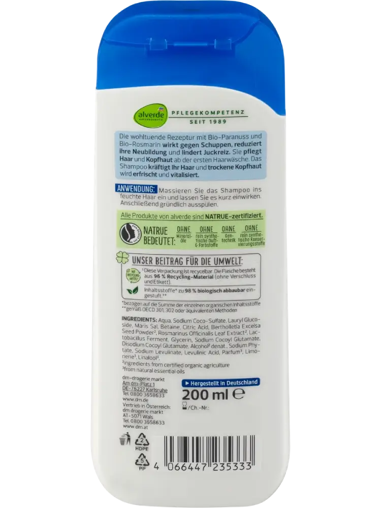 alverde NATURKOSMETIK Shampoo Anti-Schuppen Paranuss, Rosmarin, 200 ml