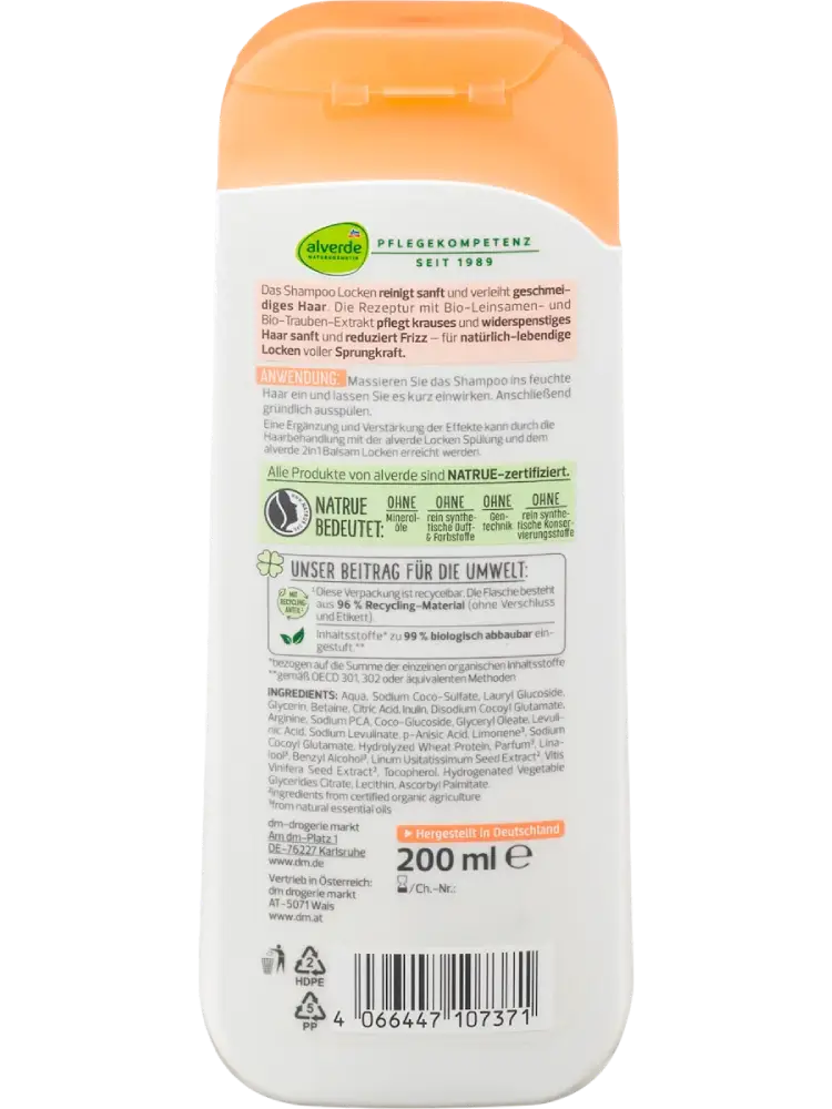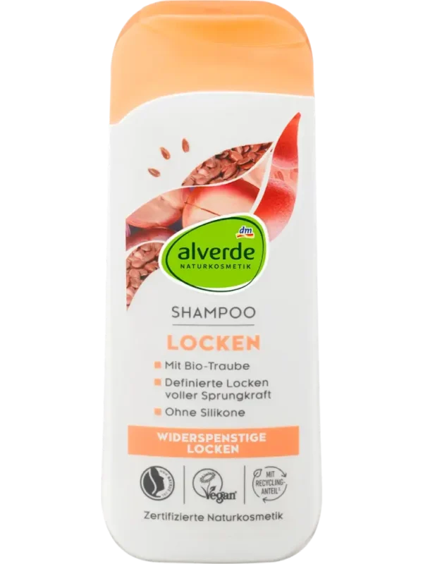 alverde NATURKOSMETIK Shampoo Locken Leinsamen, Traube, 200 ml