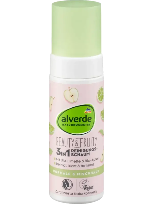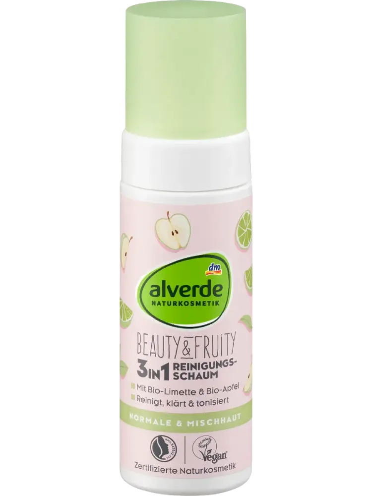 رغوة التنظيف 3 في 1 Beauty & Fruity من alverde NATURKOSMETIK تجمع بين 3 وظائف في خطوة واحدة.