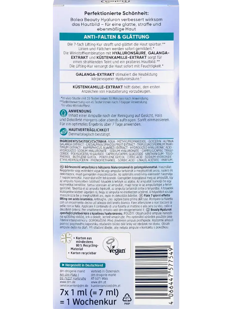 Balea Ampullen Beauty Hyaluron Lifting-Kur (7×1 ml), 7 ml