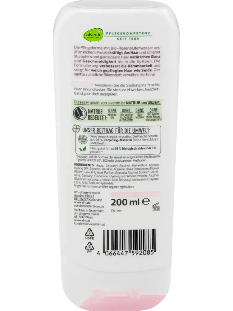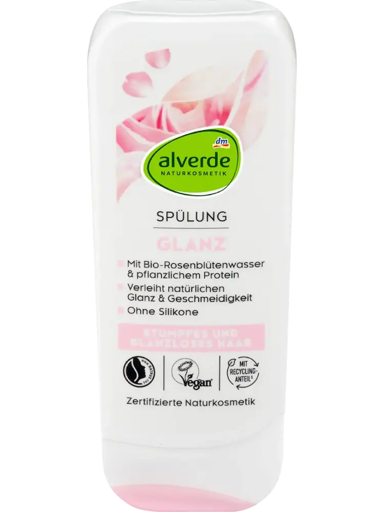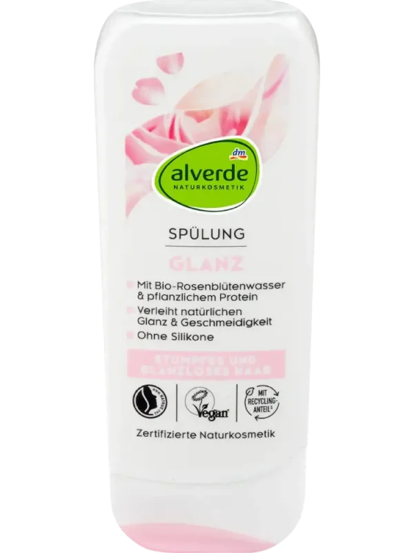 بلسم اللمعان بماء زهر الورد العضوي والبروتين النباتي من alverde NATURKOSMETIK مثالي للشعر الباهت والذي يفتقر إلى اللمعان.
