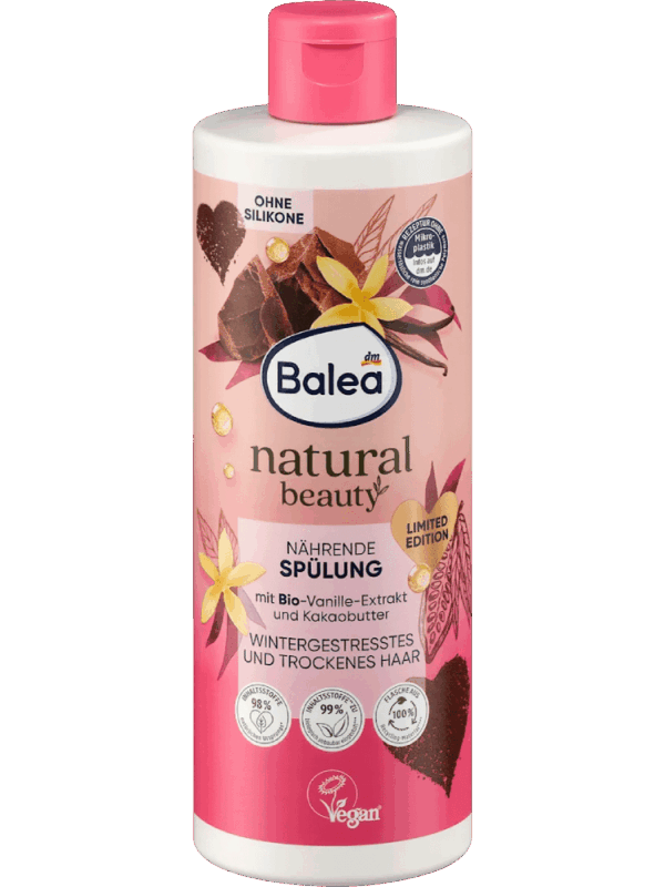يعمل بلسم Natural Beauty بخلاصة الفانيليا وزبدة الكاكاو على تغذية الشعر بعمق، مما يمنحه نعومة ومرونة مع لمعان طبيعي. وهو مثالي للعناية بالشعر الجاف والمتعب، خاصة خلال فصل الشتاء. تركيبة خالية من الجسيمات البلاستيكية الدقيقة والبوليمرات الاصطناعية القابلة للذوبان في الماء. يحتوي التغليف على ما لا يقل عن 70٪ من المواد المعاد تدويرها.