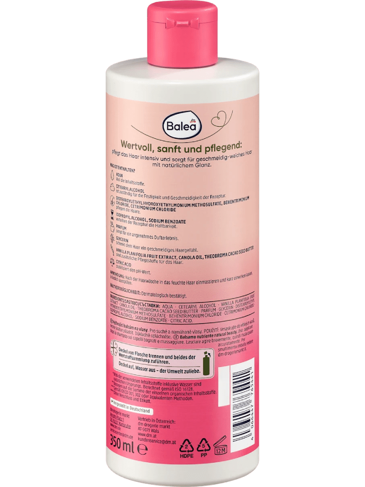 L’après-shampooing Natural Beauty à l’extrait de vanille et au beurre de cacao nourrit intensément les cheveux et assure des cheveux souples et doux avec une brillance naturelle. L’après-shampooing est idéal pour les cheveux secs et stressés par l’hiver. Recette sans microplastiques et sans polymères hydrosolubles purement synthétiques. *L’emballage contient au moins 70 % de contenu recyclé.