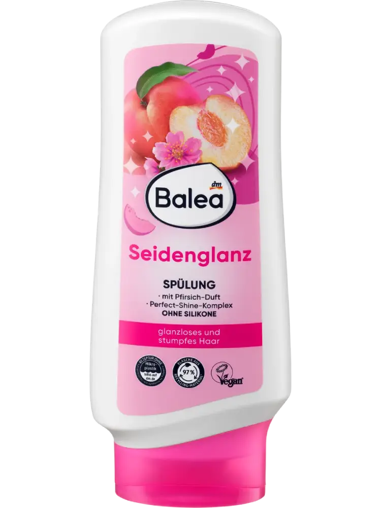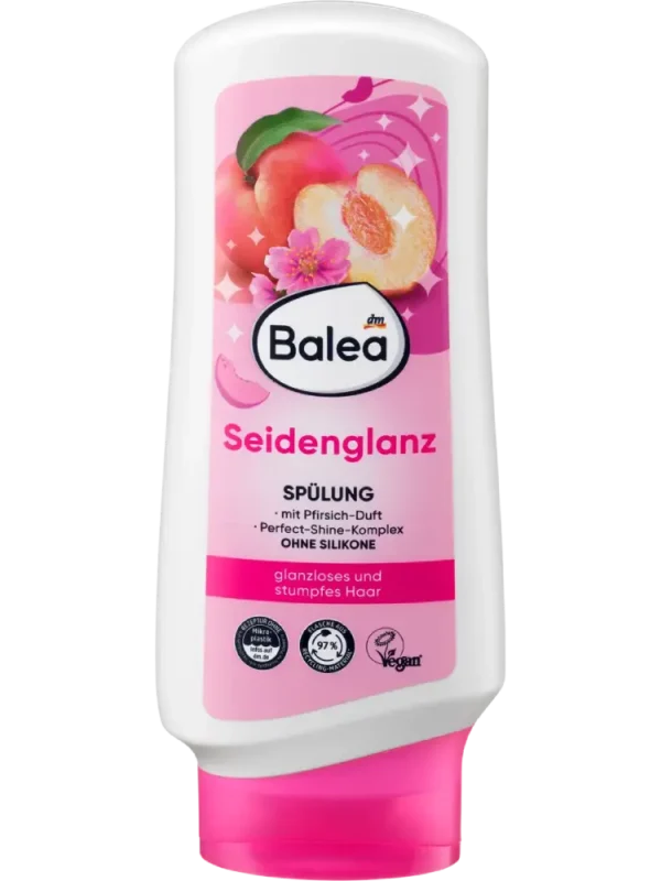 بلسم Seidenglanz من Balea مصمم خصيصًا للشعر الباهت والخالي من اللمعان، حيث يمنح الشعر بريقًا مشرقًا. تحتوي تركيبته على فيتامين B3 وبروفيتامين B5، مما يجعل تمشيط الشعر أسهل ويمنحه نعومة فائقة تمتد حتى الأطراف.