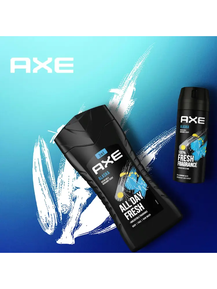 يوفر جل الاستحمام AXE Alaska تجربة استحمام ممتعة بعطر رجولي منعش ومنشط. يمنح المزيج المحفز من طحلب البلوط وحبوب التونكا إحساسًا بالانتعاش في كل الأوقات.