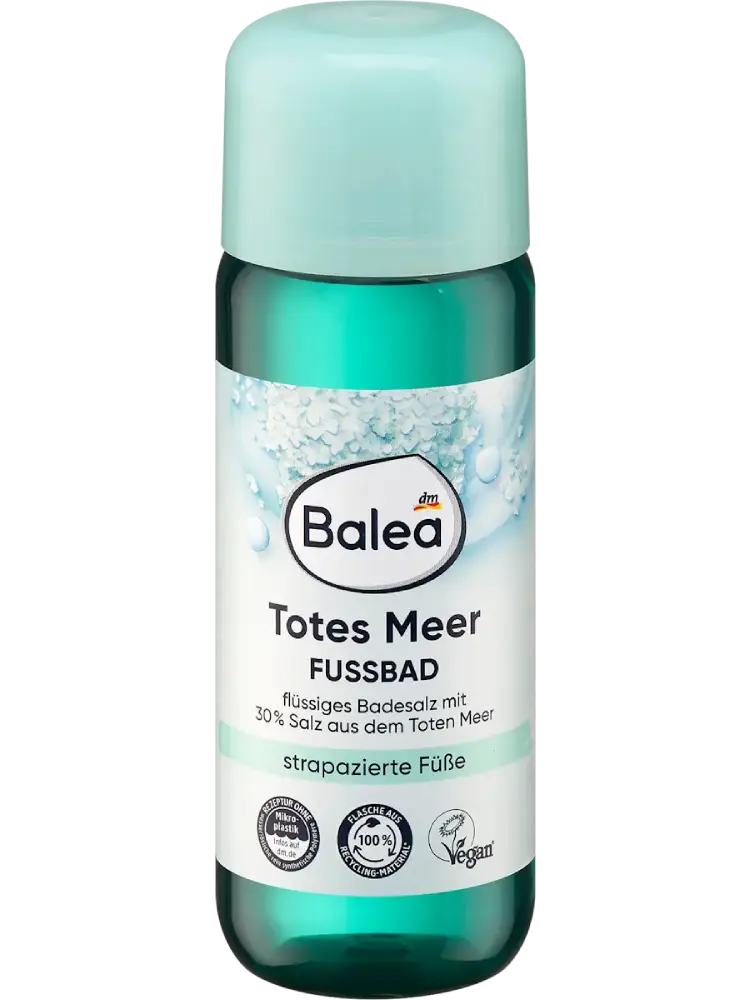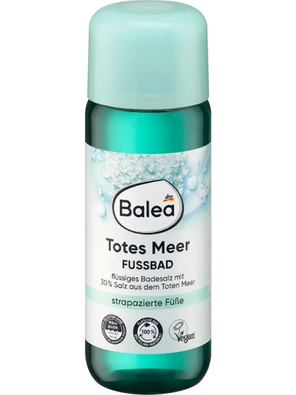 يعد حمام القدمين السائل Totes Meer من Balea خيارًا مثاليًا للاسترخاء العميق. يحتوي هذا الحمام على 30% من أملاح البحر الميت، ما يمنح البشرة ترطيبًا مريحًا ويتركها ناعمة ومرنة. بفضل تأثيره المزيل للروائح بشكل لطيف، يساعد الحمام على التخلص من الروائح الكريهة ويمنح القدمين انتعاشًا منشطًا. يوفر هذا الحمام عناية مغذية للبشرة، لتكون النتيجة أقدام نظيفة وناعمة مع شعور مريح يدوم.
