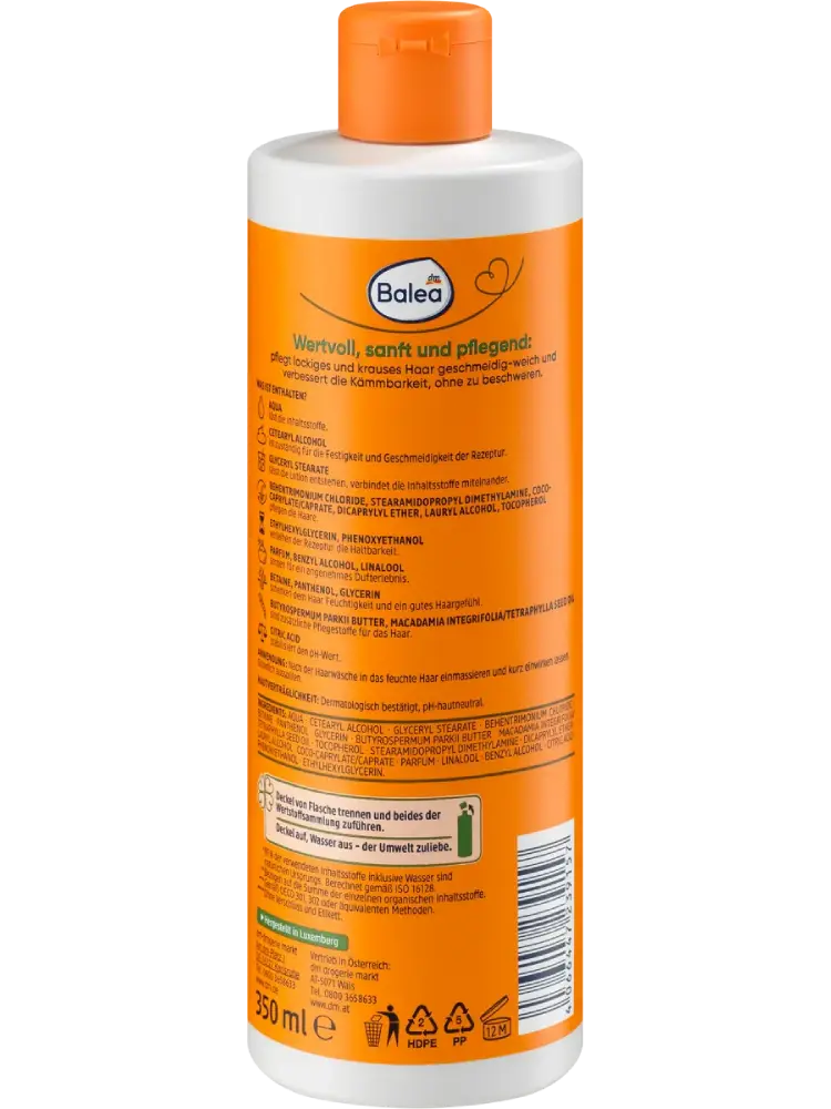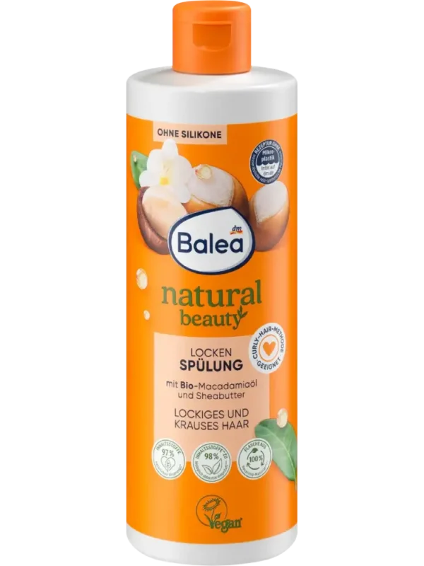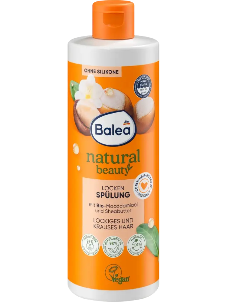 قيّم، لطيف ومغذٍ: بلسم Balea Natural Beauty للشعر المجعد بزيت المكاديميا العضوي وزبدة الشيا ينعّم الشعر المجعد والخشن ويُسهّل تمشيطه دون أن يثقله.