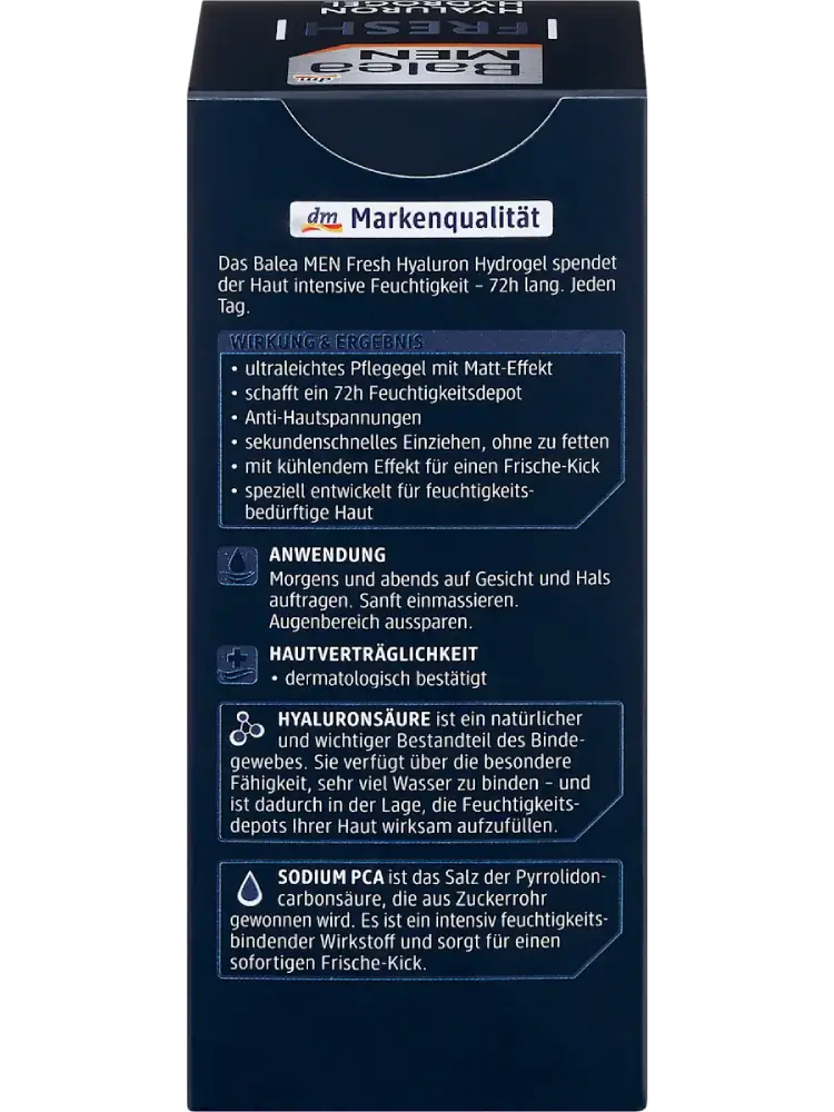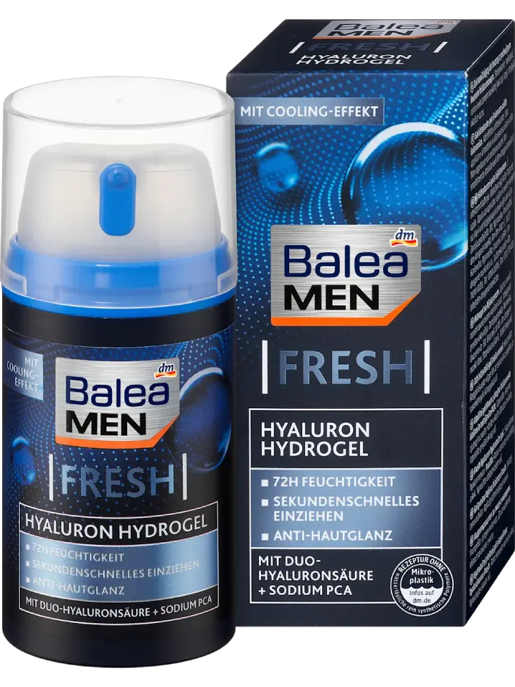 Le gel hydratant Fresh Hyaluron de Balea MEN offre jusqu’à 72 heures d’hydratation.
