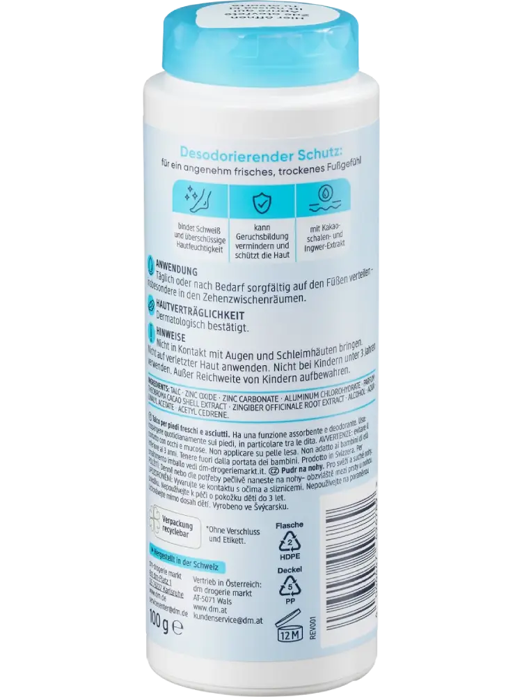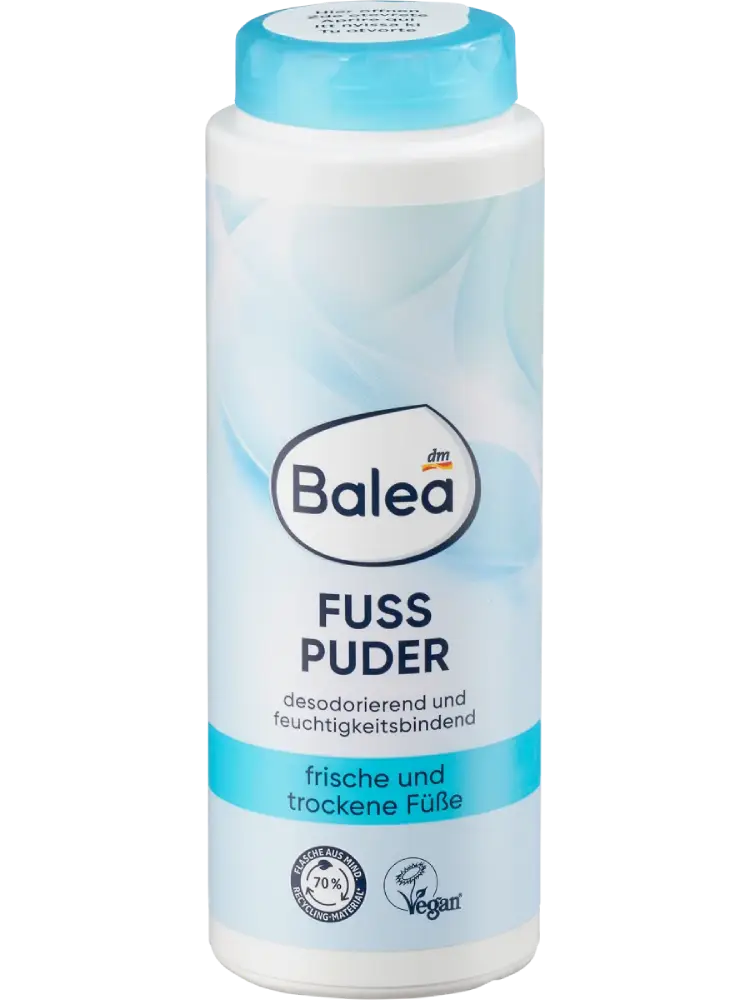 La poudre pour les pieds Balea rafraîchit et protège efficacement la peau des pieds.