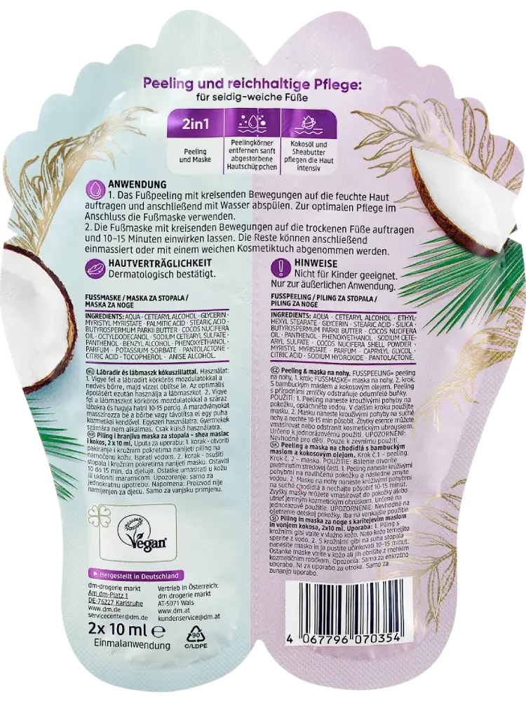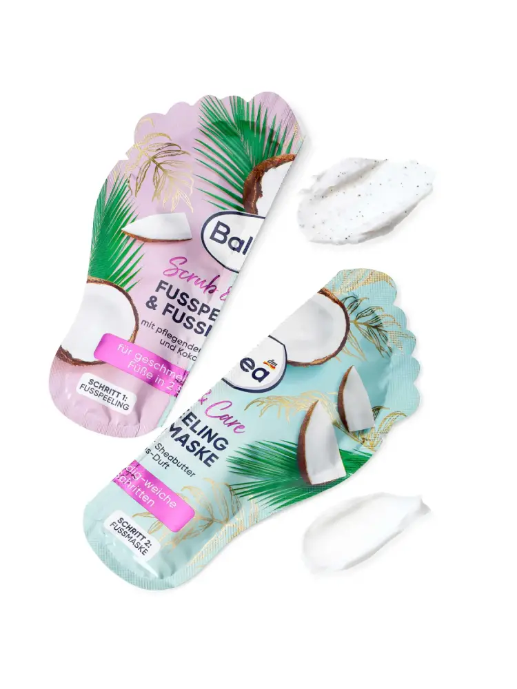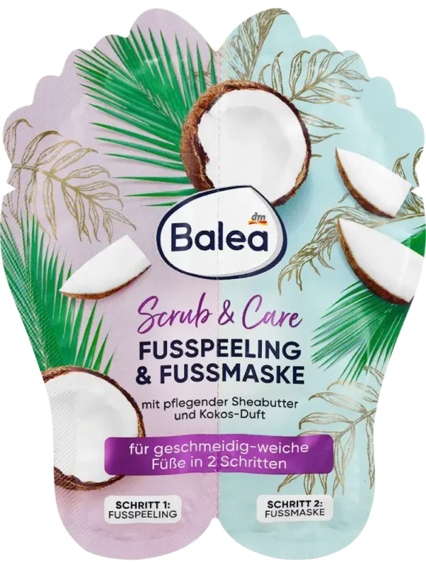 تُعد مجموعة تقشير وقناع القدمين من Balea عناية متكاملة مثالية للقدمين وتمنحهما إحساسًا دائمًا بالراحة. كما تدلل الحواس والقدمين بفضل زبدة الشيا المغذية ورائحة جوز الهند الجذابة.