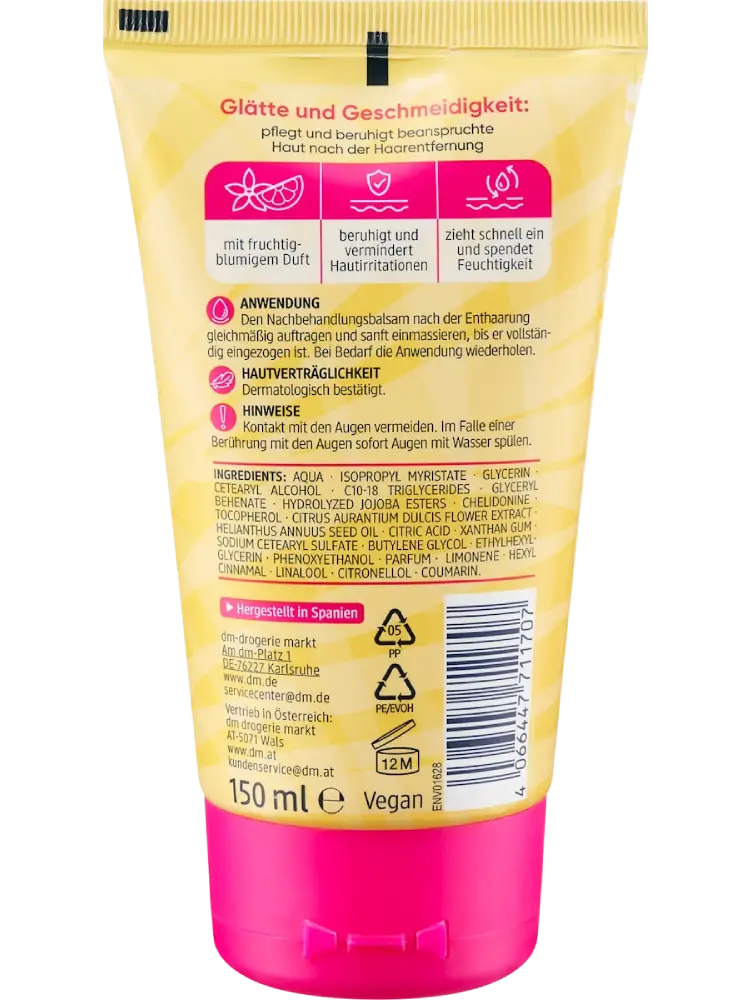 يعمل بلسم العناية بعد الحلاقة Balea بخلاصة زهر البرتقال على منح البشرة نعومة ومرونة. يمكنه تقليل تهيج الجلد وتهدئة البشرة المجهدة بعد الحلاقة. كما يتميز بسرعة الامتصاص ويوفر ترطيبًا مكثفًا.