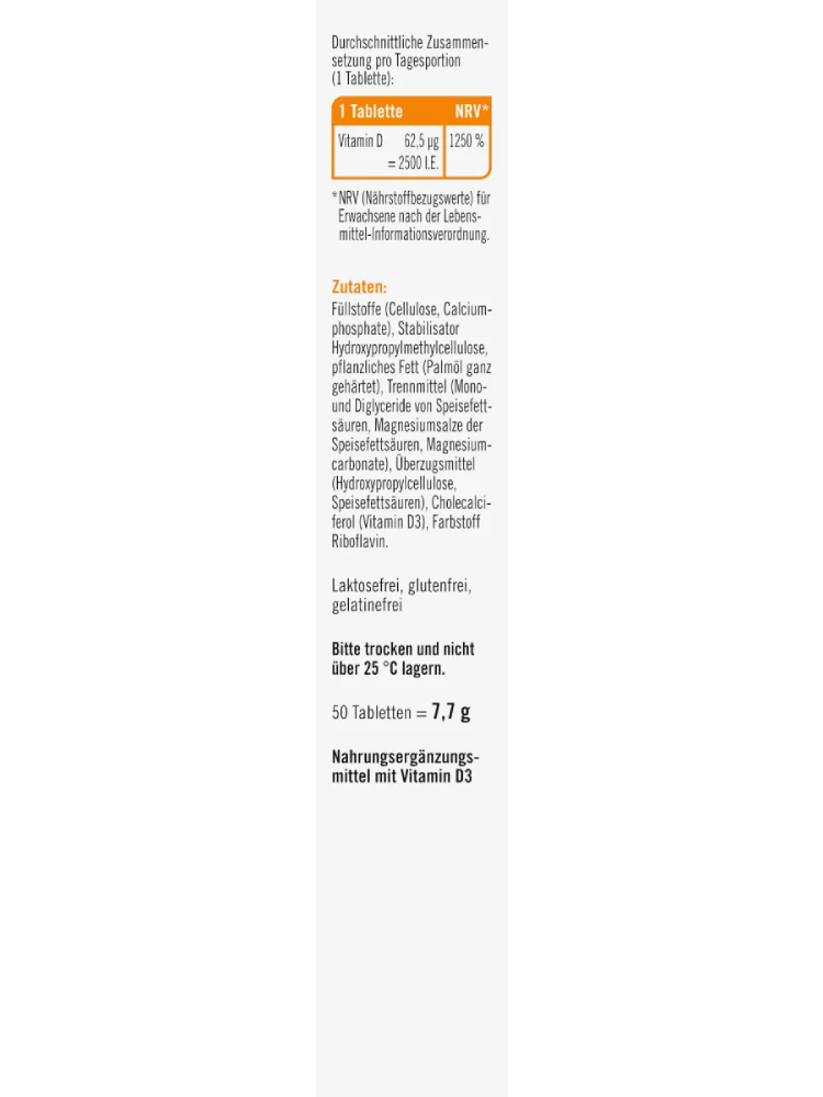 • taxofit Vitamin D3 2500 I.E. Tabletten 50 St, 7,7 g
