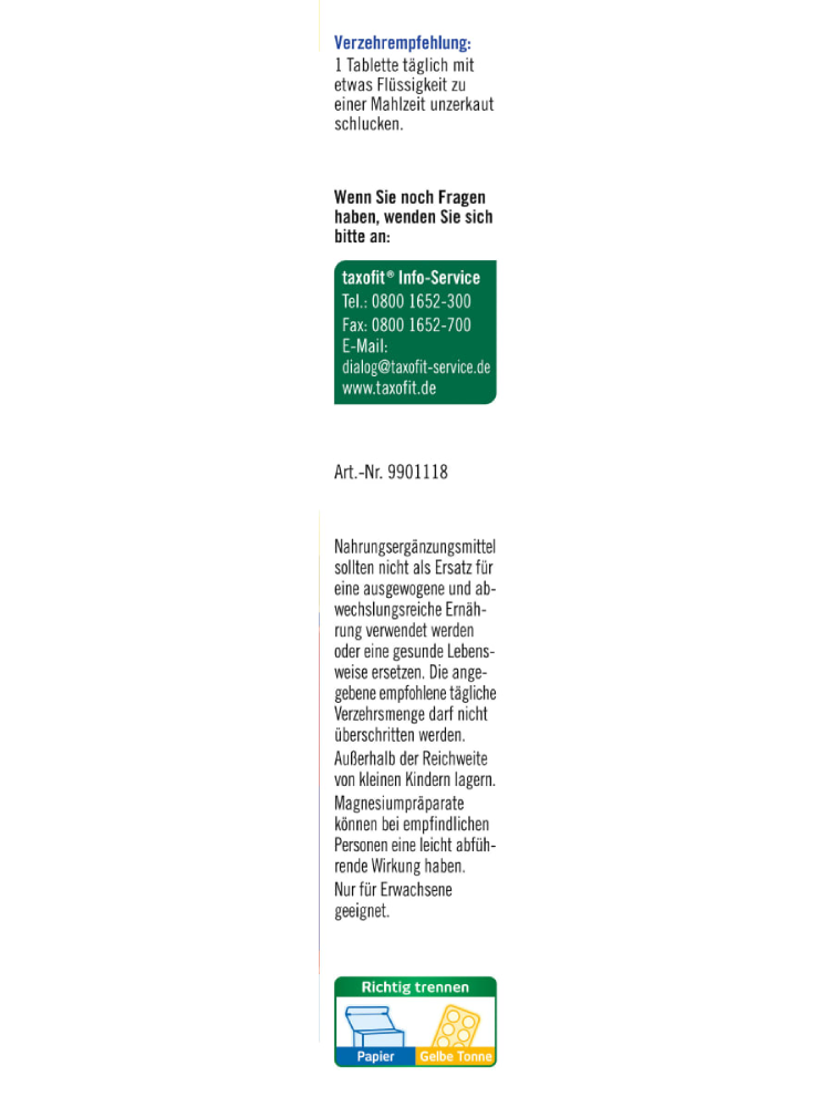 taxofit Magnesium 400 + Kalium Tabletten 30 St, 63 g