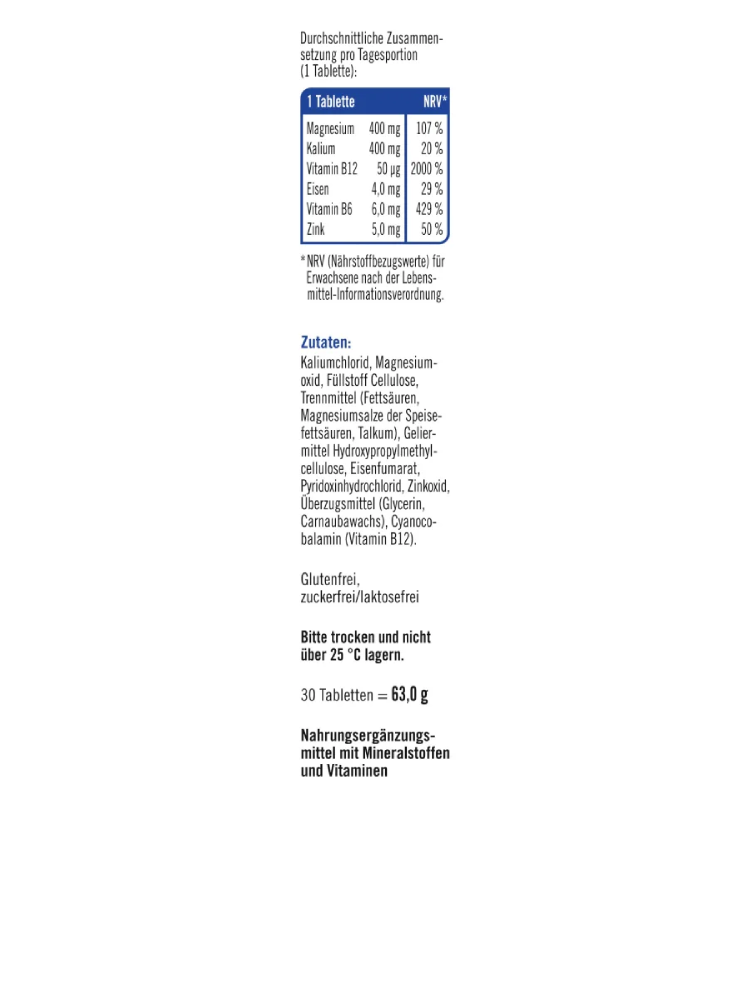 يوفر مكمل taxofit المغنيسيوم 400 + البوتاسيوم للجسم المغنيسيوم، الذي يساهم في توازن الإلكتروليتات، بالإضافة إلى البوتاسيوم. كما أن الفيتامينات B6 و B12 التي يحتوي عليها تدعم التمثيل الغذائي للطاقة. يساهم الحديد في التكوين الطبيعي لخلايا الدم الحمراء والهيموجلوبين. يساعد المغنيسيوم، وفيتامين B6، وفيتامين B12 في تقليل التعب والإرهاق.