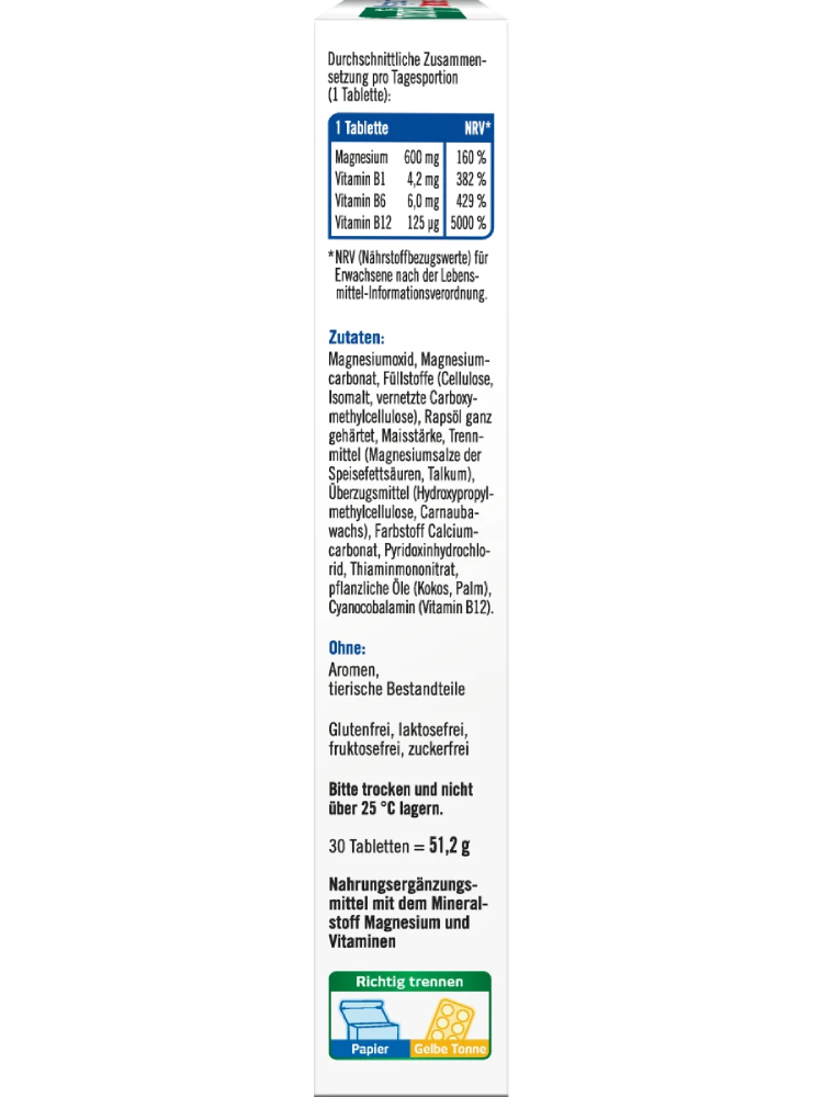 يساهم المغنيسيوم والفيتامينات B1 و B6 و B12 في التمثيل الغذائي الطبيعي للطاقة والوظيفة الطبيعية للجهاز العصبي