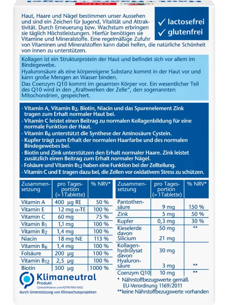 Doppelherz Haut + Haare + Nägel Tabletten (30 Stück), 19,9 g