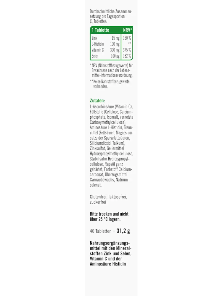 taxofit Zink+ Histidin + Vitamin C + Selen Tabletten 40 St, 31,2 g
