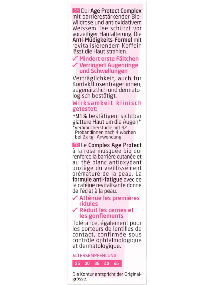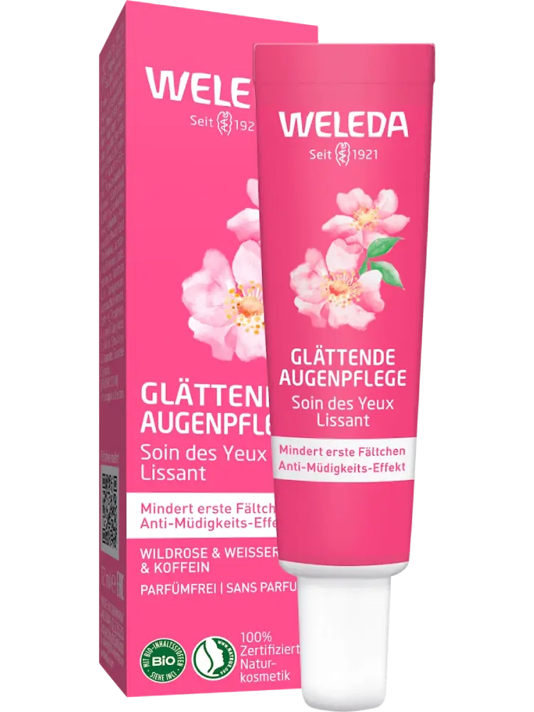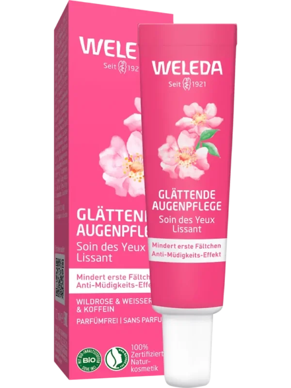 Le soin contour des yeux lissant à la rose sauvage de Weleda est enrichi en caféine revitalisante et doux pour la peau. Ce soin est également adapté aux porteurs de lentilles de contact. La formule anti-fatigue avec caféine réduit les poches et procure un effet anti-fatigue.