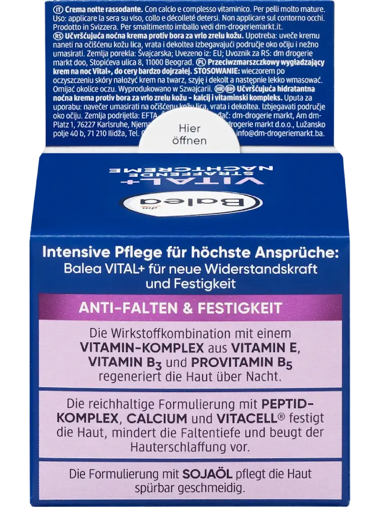عناية مكثفة لتلبية أعلى الاحتياجات: تم تصميم Balea VITAL+ خصيصًا لتلبية متطلبات البشرة الناضجة جدًا — من أجل تعزيز قوتها وتماسكها.