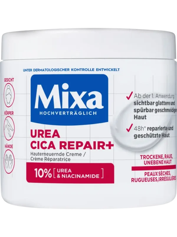 يُعد كريم Mixa Urea Cica Repair المجدد للبشرة عناية مركزة عالية الفعالية مخصصة للوجه، الجسم واليدين. تم تصميمه خصيصًا لتلبية احتياجات البشرة الجافة، الخشنة وغير المتجانسة، ويمنح بشرة أكثر نعومة وملمسًا مريحًا من أول استخدام.