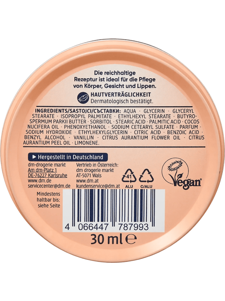 La crème de soin You are adorable de Balea est idéale pour nourrir la peau du corps, du visage et des lèvres. Elle hydrate intensément tout en laissant un délicat parfum crémeux et sucré ainsi qu’une agréable sensation de douceur sur la peau.