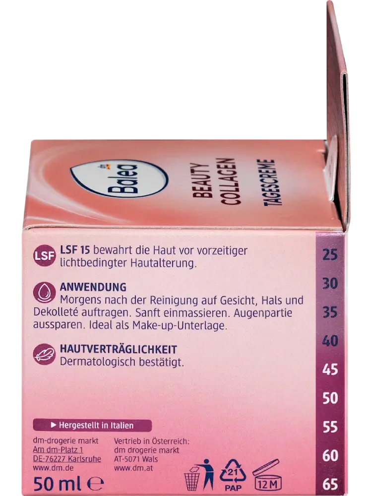 Pour une peau visiblement rajeunie et renforcée : la crème de jour Balea Beauty Collagen améliore activement la fermeté et l’élasticité de la peau.