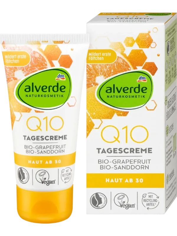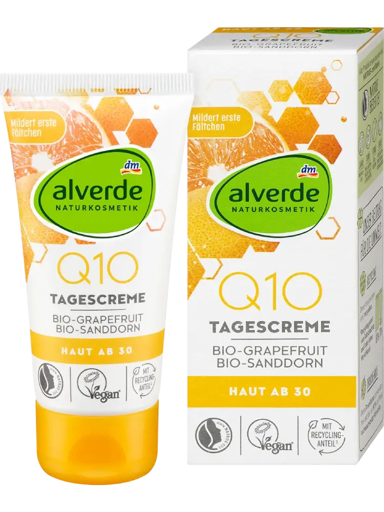 يعمل كريم النهار Q10 من alverde NATURKOSMETIK مع الإنزيم المساعد الطبيعي على حماية البشرة من العوامل البيئية الضارة ويكافح علامات الشيخوخة المبكرة. يمنح الكريم البشرة مظهراً حيوياً ومشرقاً. تبدو البشرة أكثر تناسقاً ونعومة بشكل واضح.
