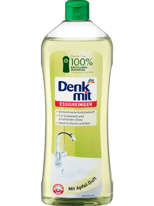 يقوم منظف الخل من Denkmit برائحة التفاح بإزالة رواسب الكلس والصابون بسهولة من الأحواض، والدُش، والمغاسل، والأحواض، والبلاط، والحنفيات – لنتائج نظيفة وبراقة.