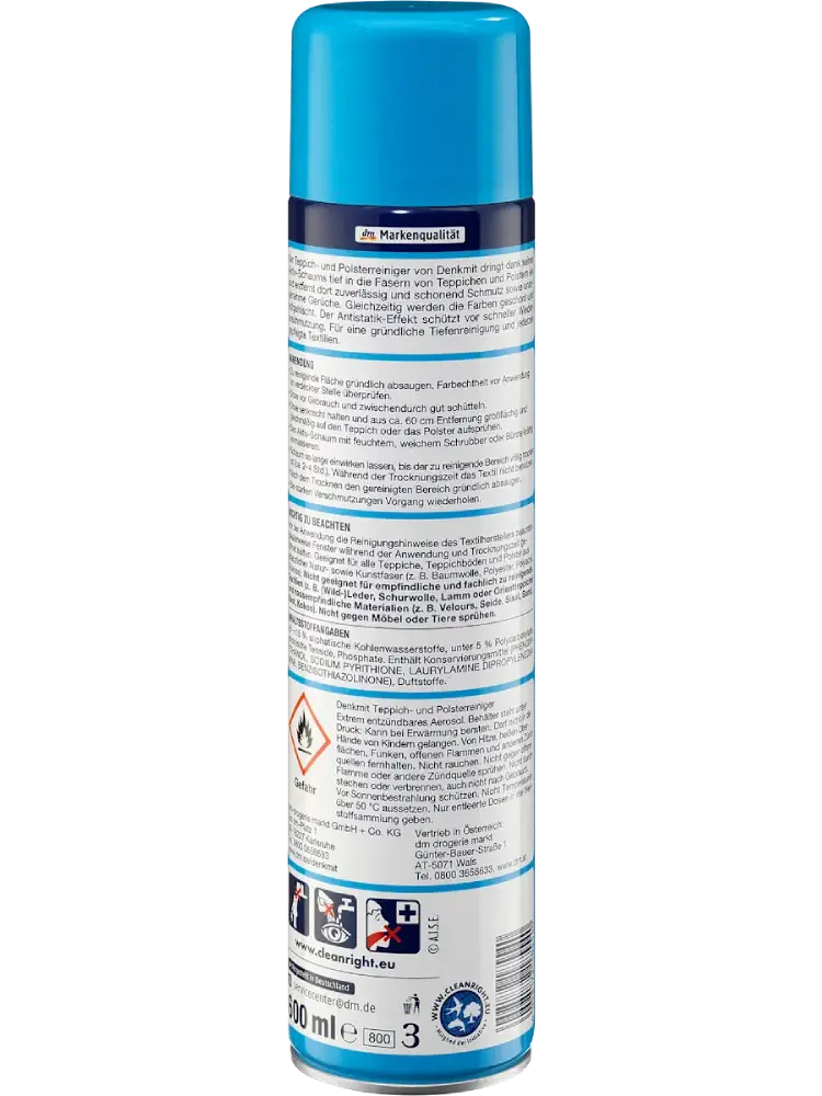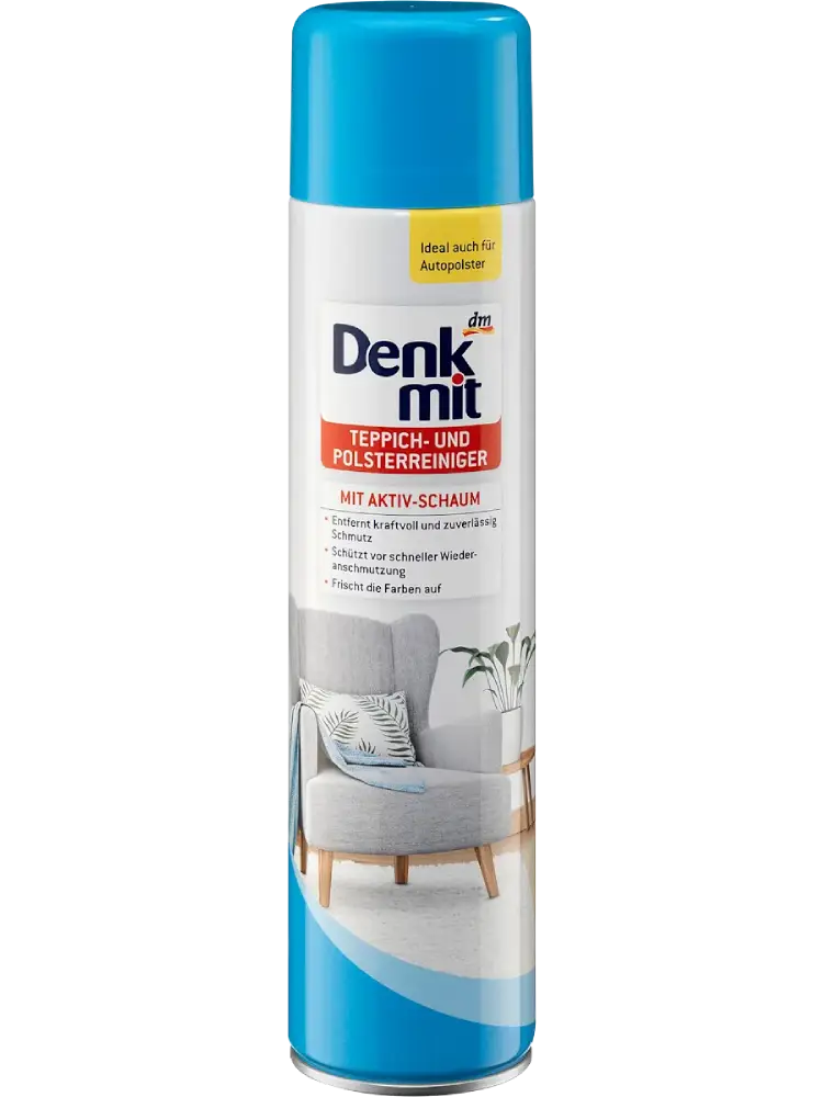 Le spray tapis & textiles avec mousse active de Denkmit garantit une propreté en profondeur jusque dans les fibres.