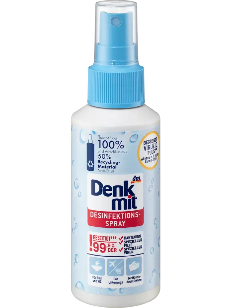 Le spray désinfectant Denkmit désinfecte rapidement et efficacement toutes les surfaces lavables ainsi que les textiles pouvant être traités avec un produit humide. Il agit contre les bactéries, les champignons et certains virus pouvant provoquer par exemple des maladies diarrhéiques, la grippe (H1N1, H5N1), l’herpès, la rubéole, les oreillons ou des infections grippales.