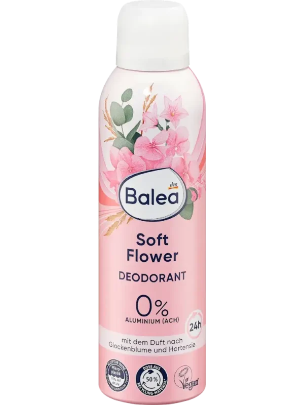 يوفر بخاخ مزيل العرق Soft Flower من Balea حماية موثوقة طوال اليوم ويمنح البشرة إحساسًا منتعشًا ونظيفًا. كما يتميز بعطر ساحر من زهرة الجرس والكوبية، ما يعزز الشعور بالانتعاش.