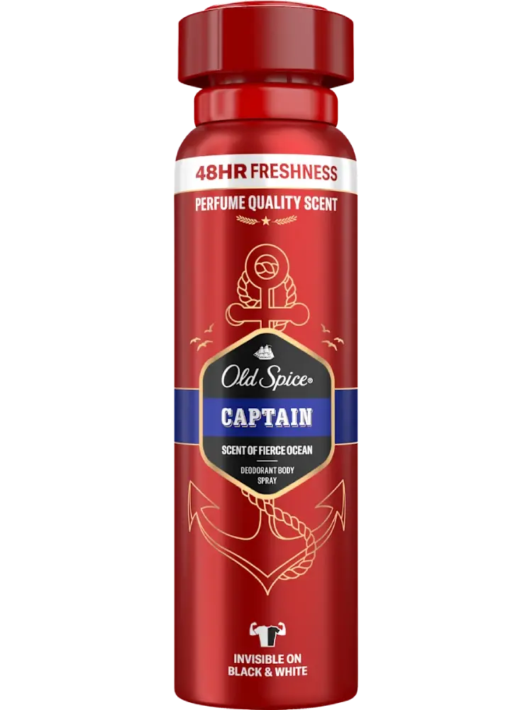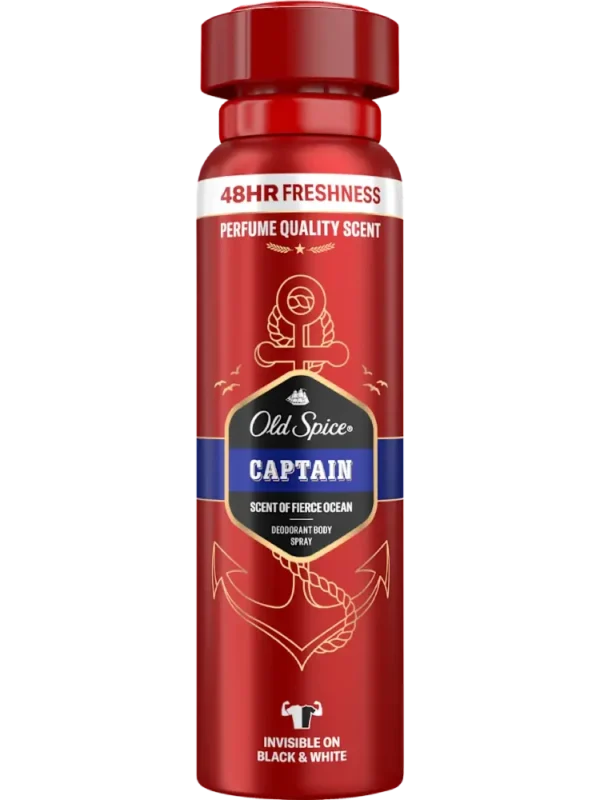 يتميز بخاخ الجسم مزيل العرق كابتن من Old Spice للرجال بقدرته على التغلب على الروائح الكريهة بفضل رائحته الفريدة. يوفر انتعاشًا يدوم 48 ساعة، ويحمي من رائحة الجسم والبقايا البيضاء.