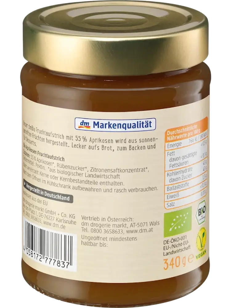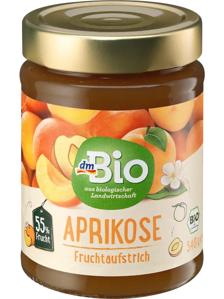 dmBio Fruchtaufstrich, Aprikose 55% Frucht, 340 g