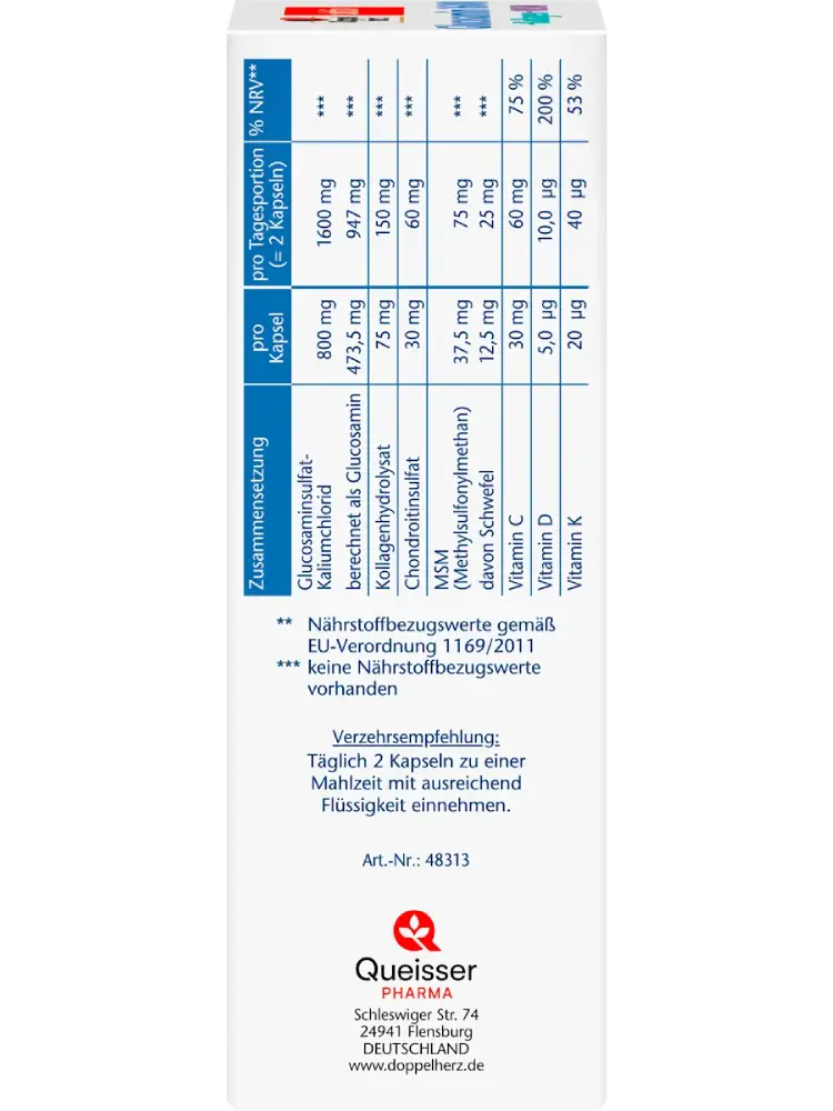 Les gélules Glucosamine 1600 de Doppelherz offrent un complément fortement dosé avec 1600 mg de glucosamine par portion journalière. Elles conviennent particulièrement aux phases de vie actives. Avec 100 gélules par boîte, une utilisation à long terme est également possible. Leur format pratique facilite la prise quotidienne et complète l’alimentation de manière simple. Un produit pratique pour un soutien ciblé au quotidien.