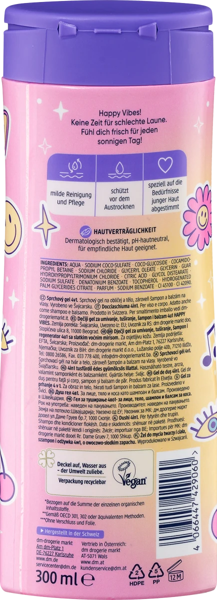 Balea Kinder Duschgel Gesicht, Körper, Shampoo & Spülung 4in1 Happy Vibes, 300 ml
