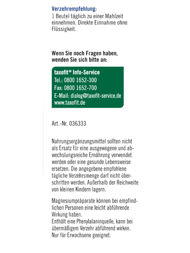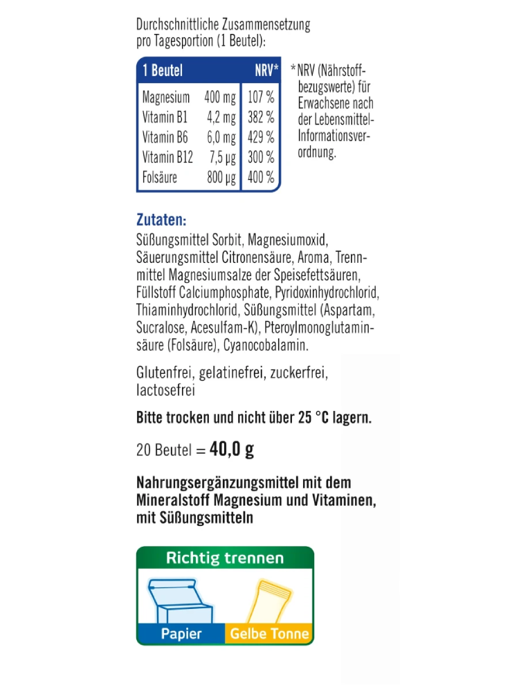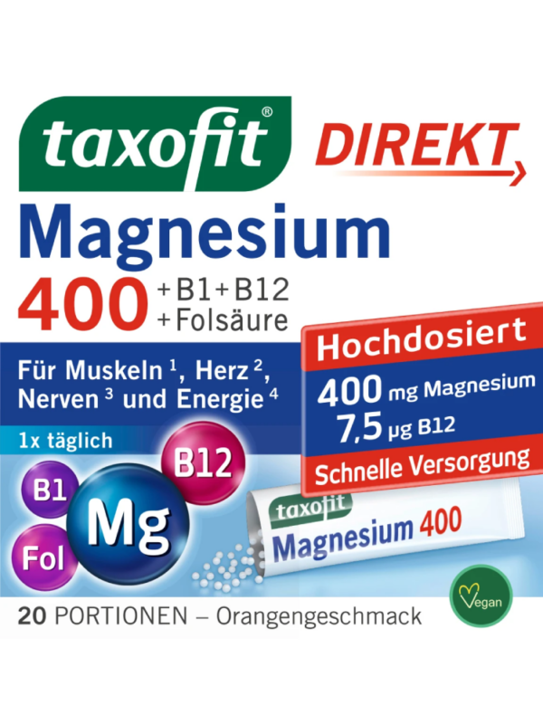 taxofit Magnesium 400 + B1 + B6 + B12 + Folsäure 800 Direkt-Granulat 20 St., 40 g