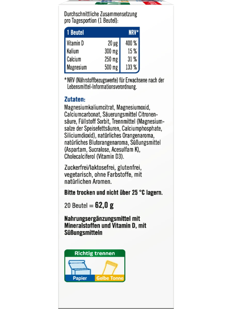 taxofit Magnesium 500 + Calcium & Kalium Direkt Granulat 20 St, 62 g