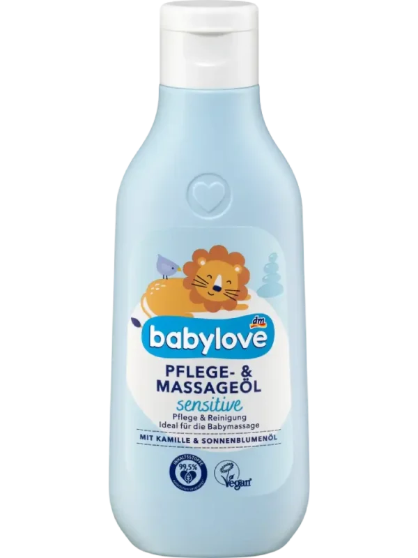يعد زيت العناية والتدليك babylove مثاليًا للعناية اللطيفة ببشرة الطفل أو للتدليك المليء بالحنان – للحصول على بشرة ناعمة كالحرير.