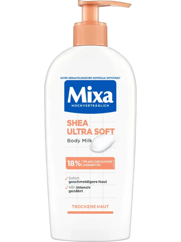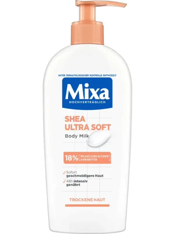 يعد حليب الجسم Mixa Shea Ultra Soft مناسبًا بشكل خاص للبشرة الجافة وقليلة الترطيب. يغذي البشرة ويرطبها لمدة 48 ساعة. بفضل المكونات عالية التحمل، يعتبر لطيفًا جدًا على البشرة. يوفر الجلسرين النباتي ترطيبًا طويل الأمد ومكثفًا، بينما تحافظ زبدة الشيا على حاجز حماية البشرة من فقدان الرطوبة، مما يمنع الشعور بالشد وتكون البقع المتقشرة. قوامه الناعم يمتص بسرعة، سهل التوزيع ولا يترك بقايا دهنية.