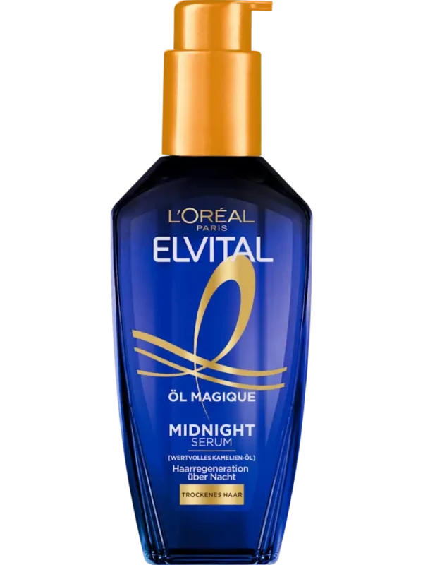 سيروم Öl Magique Midnight من L’ORÉAL PARIS ELVITAL يغذي الشعر بعمق أثناء الليل ويساعد على تجديده. زيت الشعر غير دهني ويترك الشعر ناعماً للغاية ولامعاً وجميلاً. كما أن هذا المنتج يمنح تأثيراً مضاداً للهيشان يدوم حتى 72 ساعة.