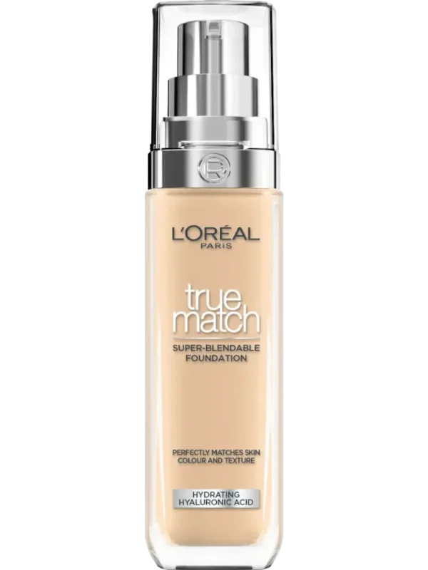 يوفر كريم الأساس L’Oréal Paris True Match بدرجات 1N أو 3N أو 4N أو 5N أو 6N توازنًا مثاليًا بين التغطية والعناية بالبشرة. تحتوي تركيبته المبتكرة على حمض الهيالورونيك الذي يساعد على ترطيب البشرة ويمنحها مظهرًا ناعمًا ومتجانسًا.