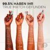 Sa texture facile à estomper s’adapte au teint naturel de la peau et laisse un fini naturel sans démarcations visibles. Grâce à sa couvrance moyenne, la peau paraît plus uniforme et lumineuse. Cette fondation sans parfum, testée dermatologiquement, convient à tous les types de peau.